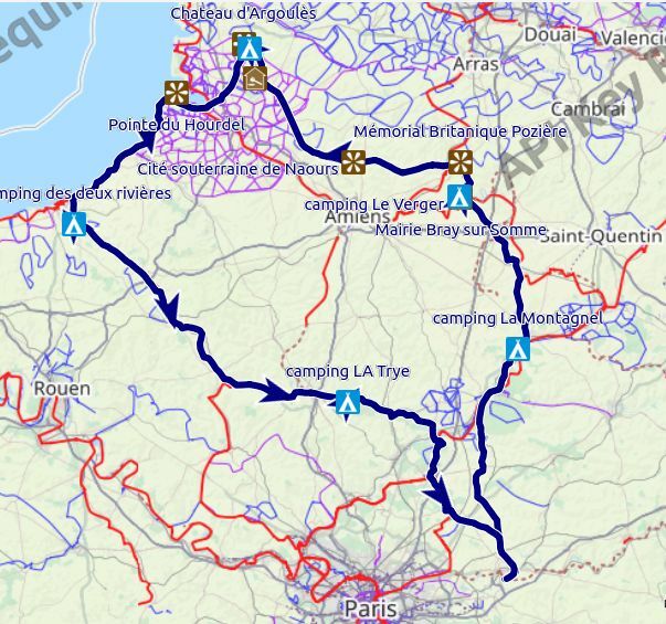 J’avais déjà exploré une partie de la Somme en 2023 en effectuant en cyclo-camping le trajet Nanteuil-lès-Meaux, Amiens, St-Valéry-sur-Somme, Dieppe, Beauvais, NLM, puis en 2024 une remontée de la Somme, NLM , Amiens, Péronne, Compiègne, NLM et cette année j’ai donc décidé de découvrir un peu plus ce département.