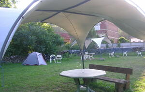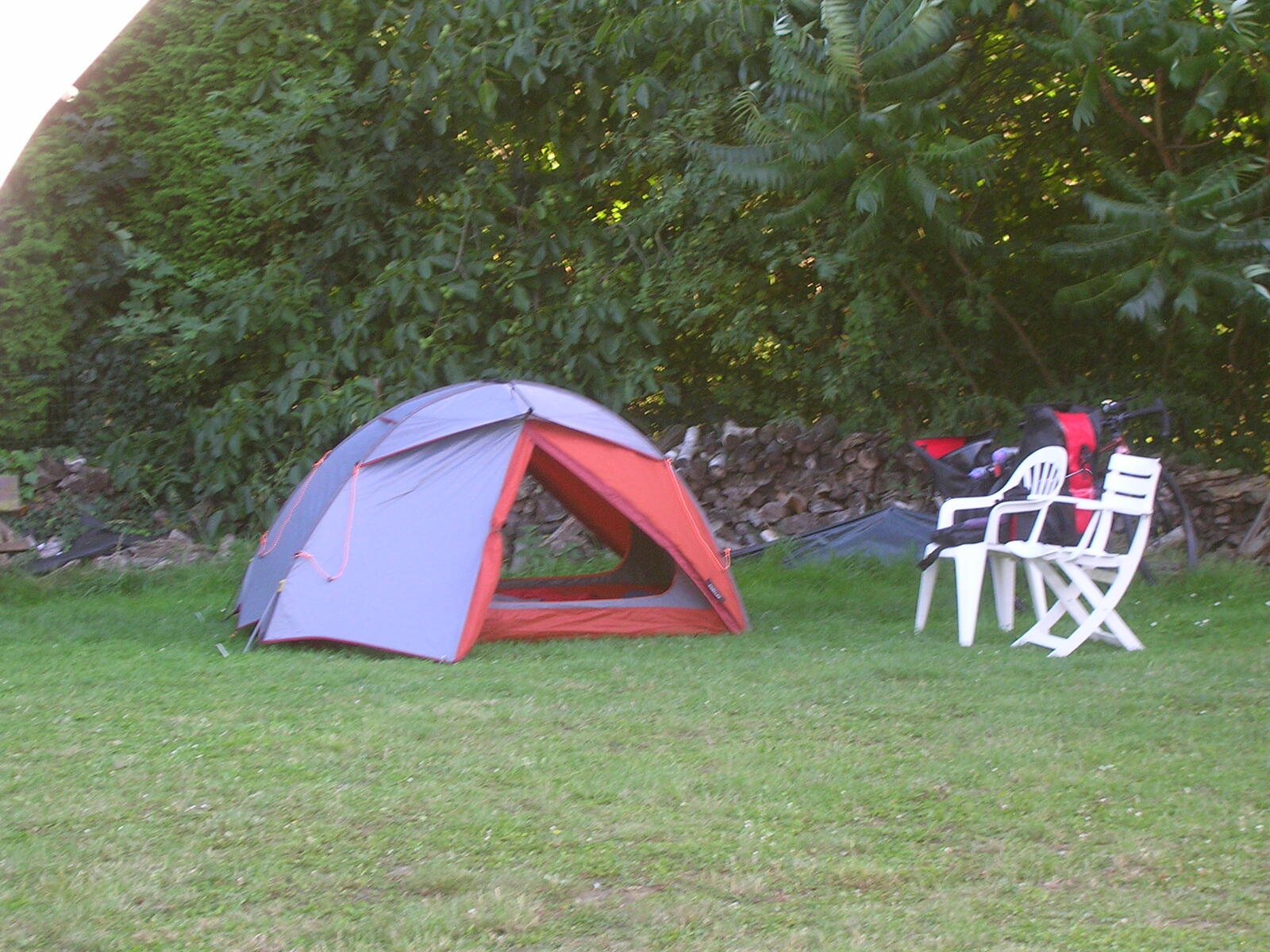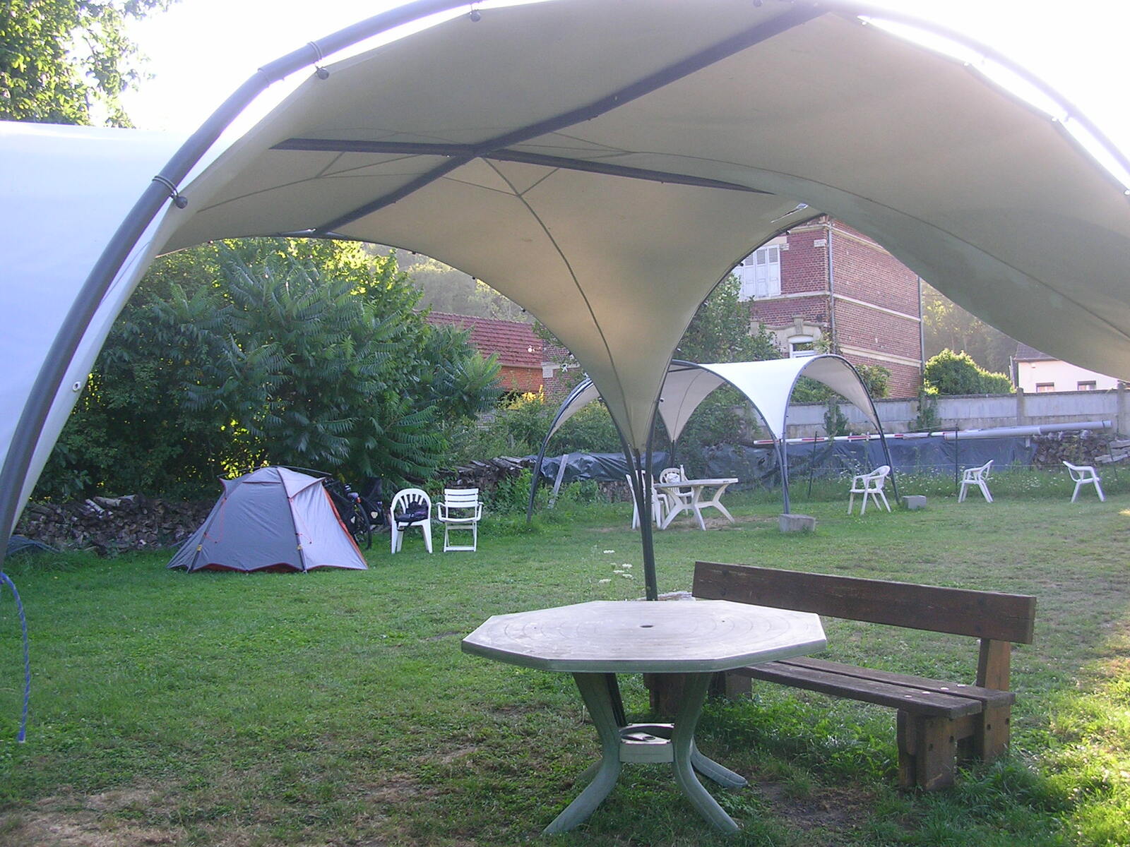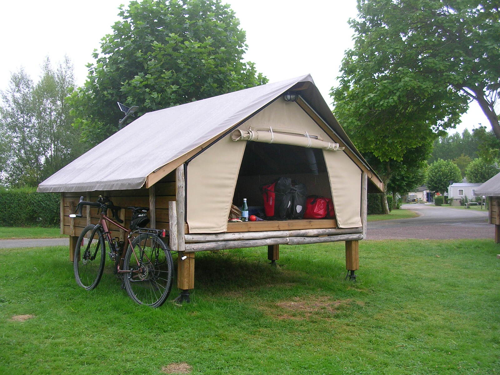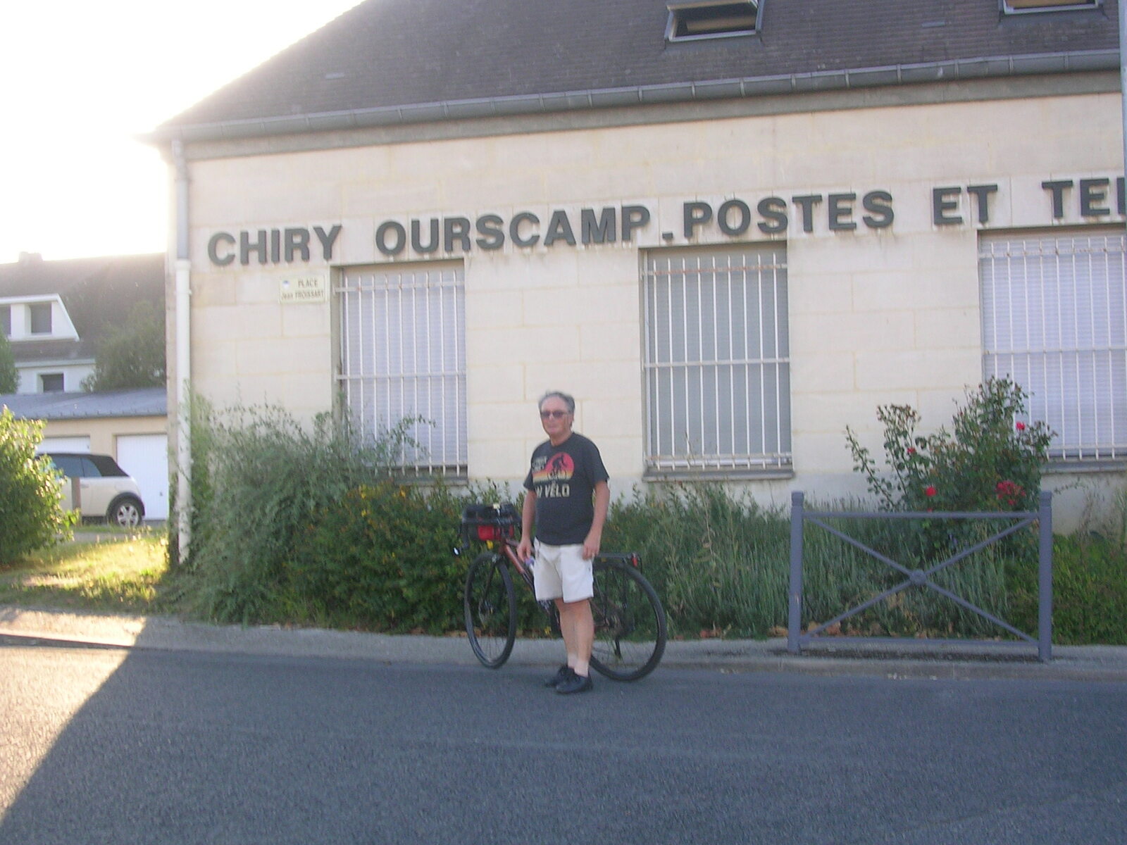 Après un départ tardif, je prends la route direction Compiègne. Je me perds dans Béthisy-Saint-Pierre et par la même occasion perds du temps, grimpe inutilement des côtes. Ma trace différente de la dernière fois me détourne par un chemin forestier abrupte, mais un peu de marche ne fait pas de mal. La pendule tourne aussi et après quelques petits détours dans Compiègne je retrouve enfin la bonne route. Le pont que j’aurais dû emprunter pour traverser l’Oise était coupé, je me suis donc dérouté pour récupérer ma trace. En arrivant au camping d’Ourscamp pas de tampon pour valider mes brevets, même à la pizzeria locale, alors une photo devant le nom inscrit en grosses lettres sur le mur de la poste fait l’affaire. Au terrain de camping, il y a un espace dédié aux cyclistes, muni de tables, chaises, sous abris de toiles, et des prises électriques pour recharger nos batteries, c’est sympathique. Par contre les sanitaires sont un peu sous-estimés pour un 3 étoiles, mais le site est calme, je vais sûrement bien dormir.