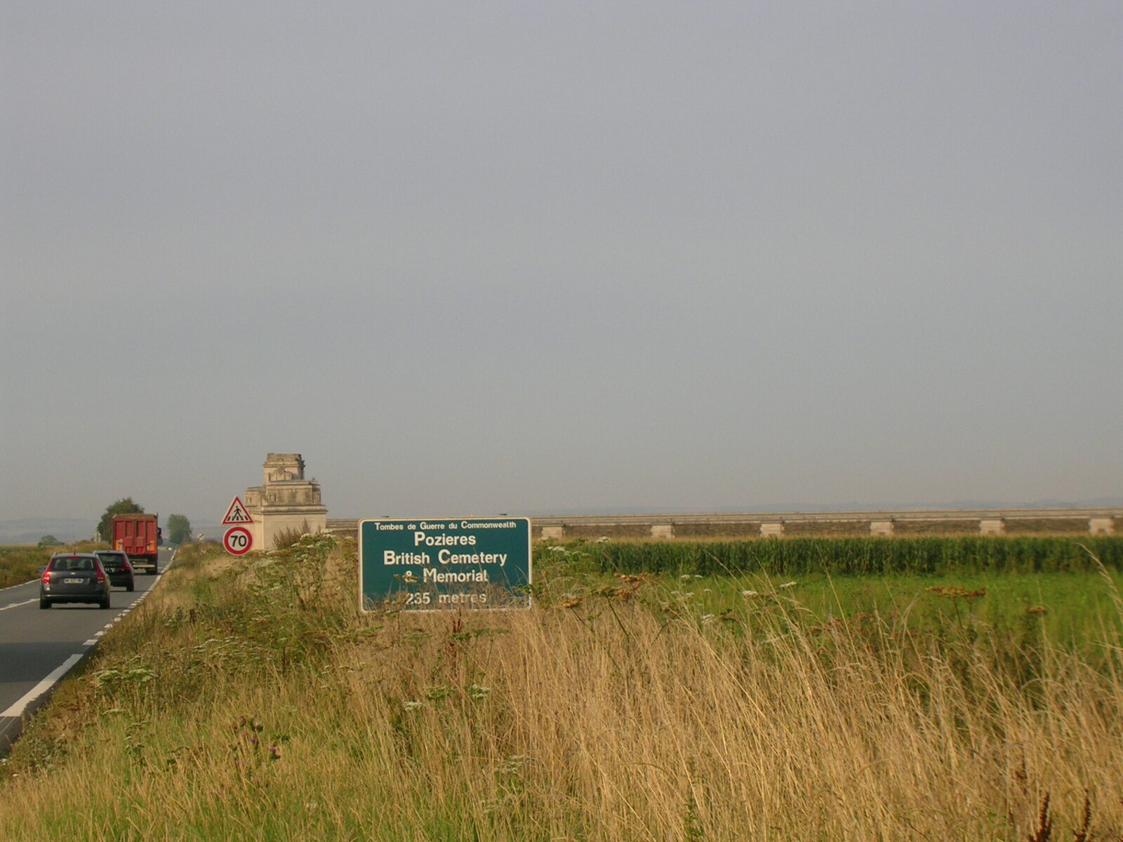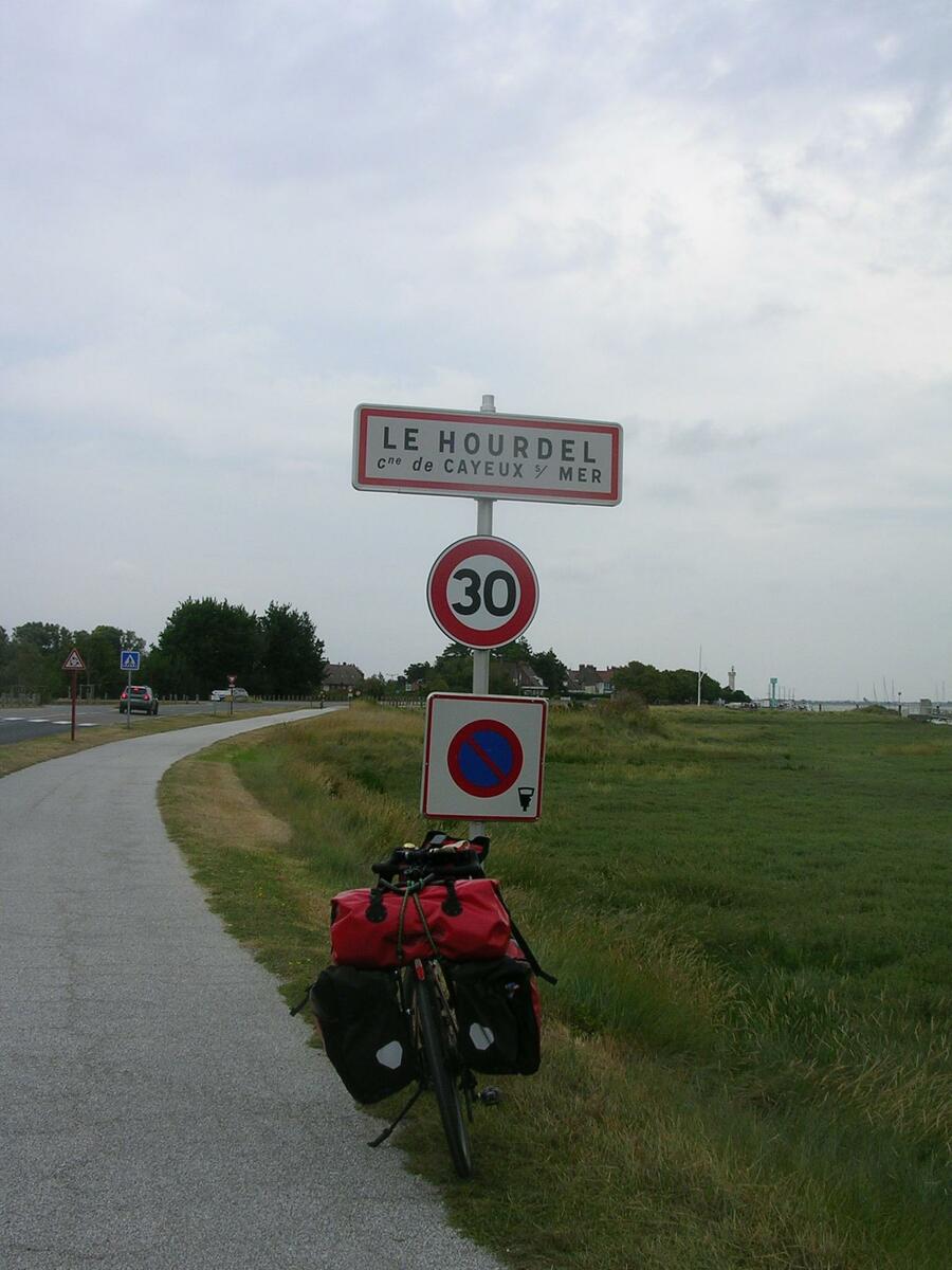 Aujourd’hui l’étape sera plus longue, je traverse des paysages de fermes et de cimetières militaires. Batailles de la Somme obligent, les sites en mémoire aux soldats Anglais, Australiens tombés au combat sont importants à Pozières. Son musée est fermé, j’y reviendrai sûrement avec mes petits-enfants. Je croise un peloton de cyclistes qui me souhaite bon courage et l’un d’entre eux dit à ses copains "en plus, il n’est pas tout jeune". En effet, j’ai souhaité mes 69 ans lors de la semaine fédérale d’Orléans, voilà 9 jours, mais faut-il être jeune pour se faire plaisir ? Les côtes fréquentes ponctuent le parcours avec une chaleur de 27°/30° et m’obligent parfois à mettre pied à terre pour marcher à l’ombre d’arbres bordants la route. Arrivé à Naours, je ne prendrai pas le temps d’une visite de cette cité souterraine, ce serait trop long, mais je profiterai de pique-niquer à l’ombre sur un banc mis à disposition par le village. Je me rapproche de la mer et le vent est plus frais. Ce soir le vent s’est levé, le ciel est nuageux, a changé, pas de pluie annoncée, on verra. Les jeunes de ce terrain de camping municipal chargé de mobil-home résidentiels se sont manifestés à proximité de ma tente la nuit tombée. Ils s’ennuyaient sûrement et auraient voulu échanger avec ce campeur bizarre que je devais représenter à leurs yeux. J’étais trop fatigué pour avoir envie de me relever, leur expliquer la raison de ma présence, de mon voyage et probablement les faire rêver aussi un jour de partir à vélo.