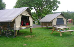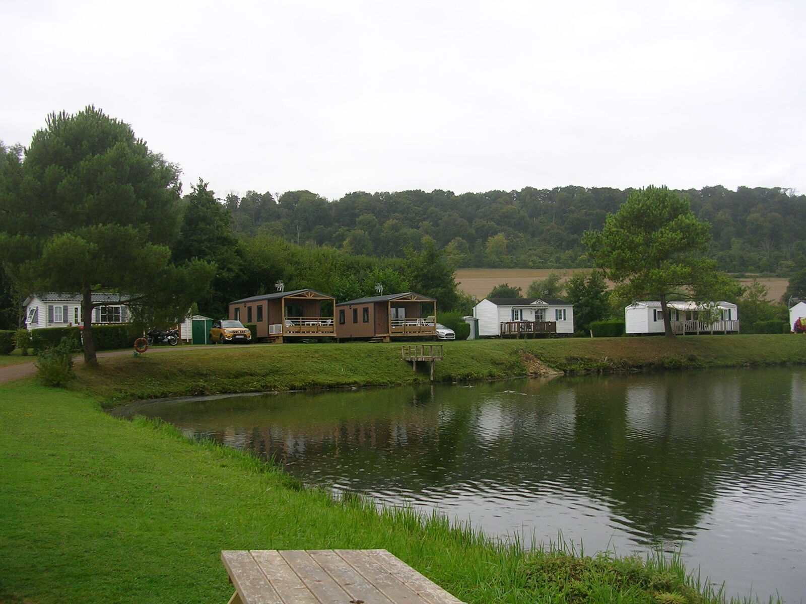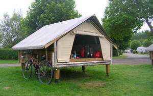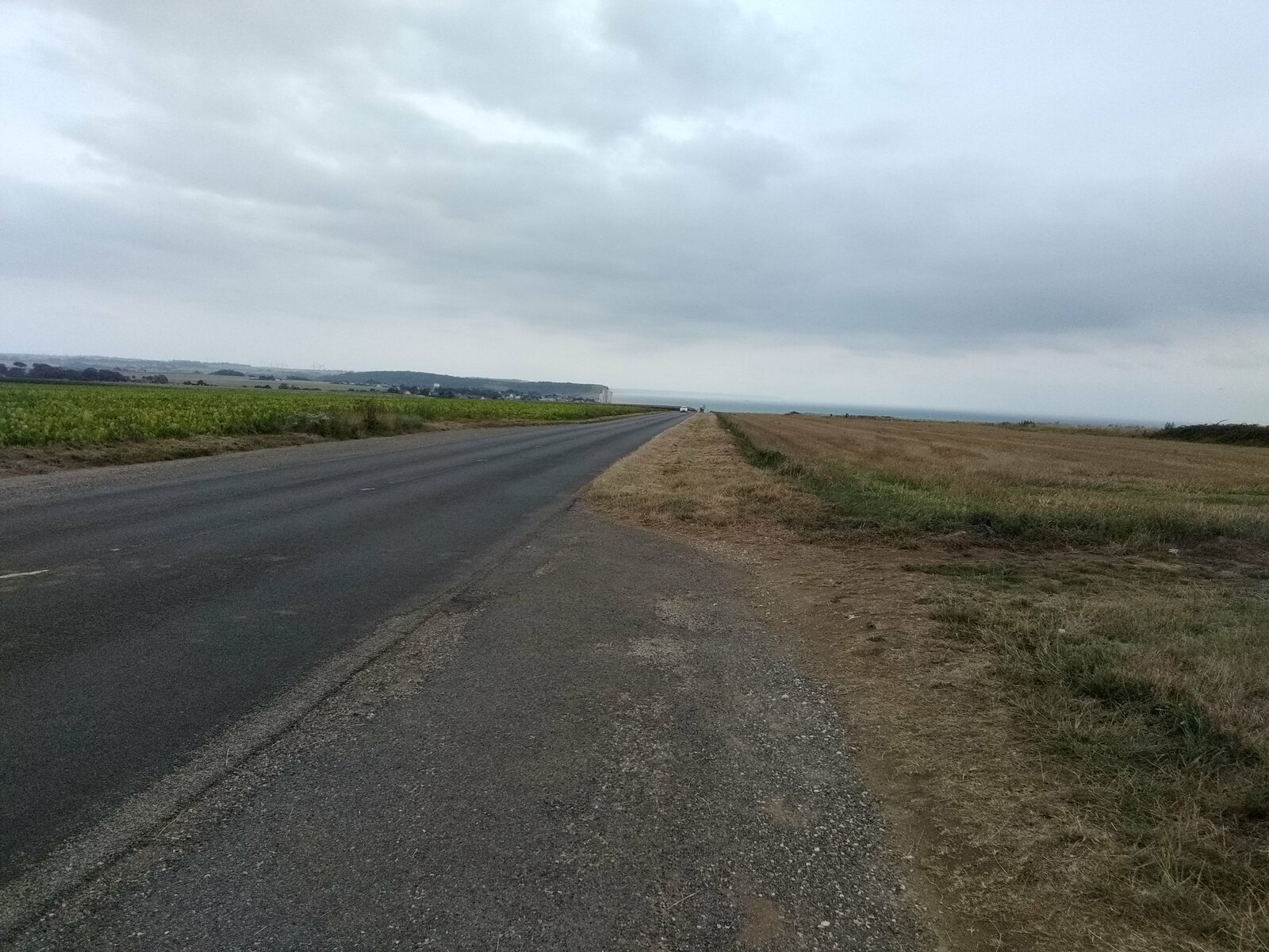 Par chance, il n’a pas plu cette nuit, mais le vent a soufflé fort. Un début de parcours en douceur, mais déjà la première grosse montée se présente, pour accéder au plateau, emprunter un chemin agricole, c’est du gravel involontaire. Avec le vent dans le dos, de bonnes longues descentes, j’arrive relativement vite à Noyelles-sur-mer. Je me retrouve en terrain connu pour l’avoir déjà parcouru avec mon épouse. J’atteins facilement Saint-Valéry-sur-Somme avec toujours un vent de dos qui me pousse rapidement. Arrivé vers 13:30h à Cayeux-sur-mer, je fais une pause pique-nique sur un banc face à la mer, le dos aux cabanes qui bordent le chemin de planches permettant de marcher sur les galets. Au Tréport pour passer du port à la ville haute, j’emprunte le funiculaire et dans la cabine, j’écoute ce petit garçon qui me parle de son expérience de jeune cycliste. Ses yeux brillent, arrivé en haut, il monte sur le porte-bagages du vélo de son grand-père et me fait au revoir de sa main. Je suis la Vélo-maritime "EV4", à la sortie de Criel-sur-mer, je rattrape un jeune couple qui cherche son chemin sur son smartphone. Je les accompagne un brin de route. Ils viennent de Lille, Simon et sa copine (comme il me l’a présentée) a 29 ans, et voyagent pour la première fois sur des vélos simples avec des sacoches Décathlon jaunes neuves. Simon me dit avoir un petit budget et que ce voyage jusque Fécamp est pour eux le moyen le plus économique pour beaucoup de liberté. Nous nous séparons en route, mais je les retrouverai à mon arrivée, au camping d’Arques-la-Bataille. Demain, ils prendront sûrement la "route du lin" pour rejoindre Fécamp et rentrer à Lille par le train. Quelques gouttes de pluie m’incitent à louer un "Campana" une sorte de tente sur pilotis. J’ai bien fait, une petite pluie aura mouillé l’herbe dans la nuit et je n’aurai pas de tente à faire sécher et plier au matin.