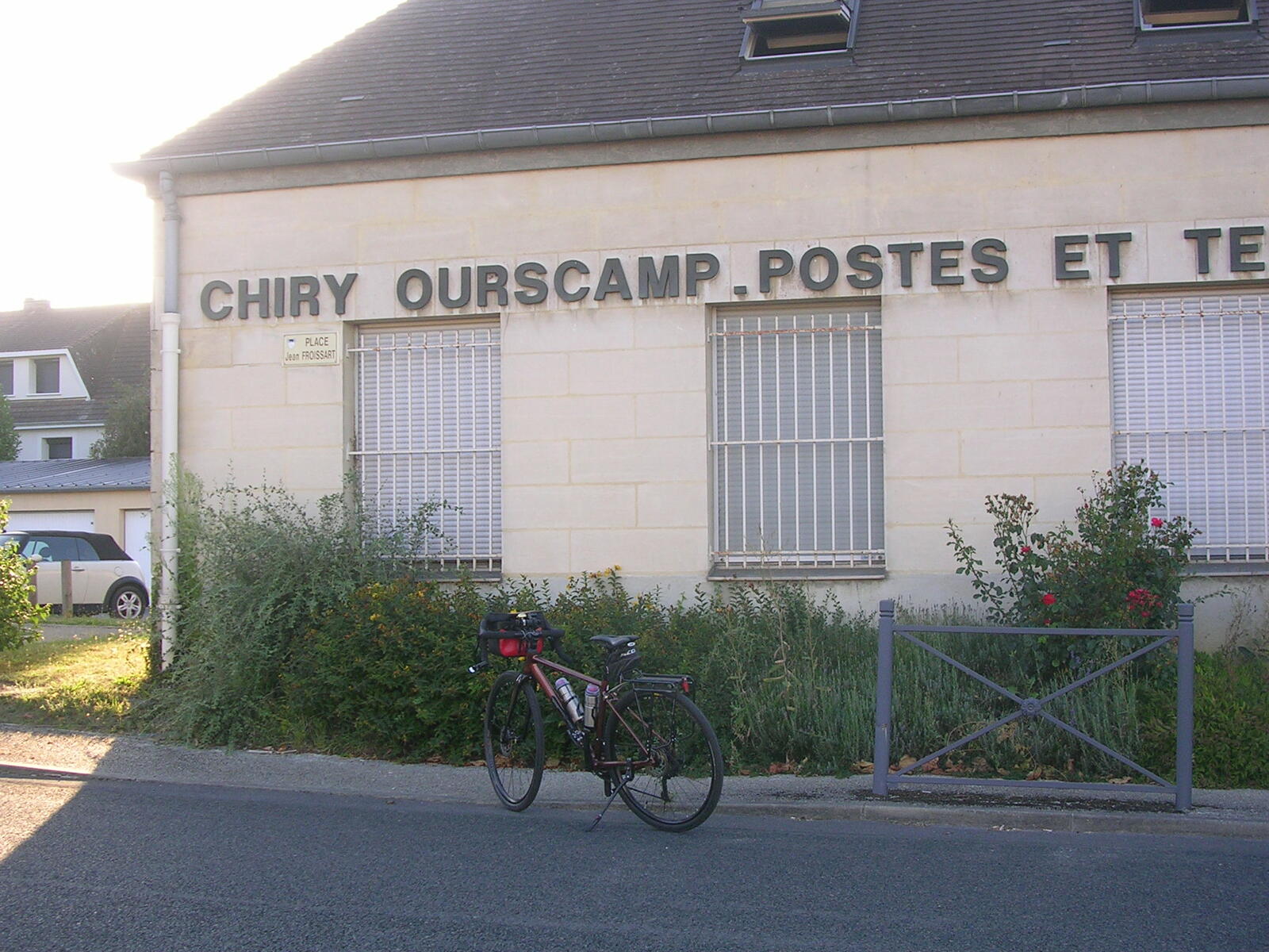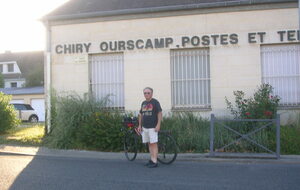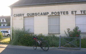 Après un départ tardif, je prends la route direction Compiègne. Je me perds dans Béthisy-Saint-Pierre et par la même occasion perds du temps, grimpe inutilement des côtes. Ma trace différente de la dernière fois me détourne par un chemin forestier abrupte, mais un peu de marche ne fait pas de mal. La pendule tourne aussi et après quelques petits détours dans Compiègne je retrouve enfin la bonne route. Le pont que j’aurais dû emprunter pour traverser l’Oise était coupé, je me suis donc dérouté pour récupérer ma trace. En arrivant au camping d’Ourscamp pas de tampon pour valider mes brevets, même à la pizzeria locale, alors une photo devant le nom inscrit en grosses lettres sur le mur de la poste fait l’affaire. Au terrain de camping, il y a un espace dédié aux cyclistes, muni de tables, chaises, sous abris de toiles, et des prises électriques pour recharger nos batteries, c’est sympathique. Par contre les sanitaires sont un peu sous-estimés pour un 3 étoiles, mais le site est calme, je vais sûrement bien dormir.