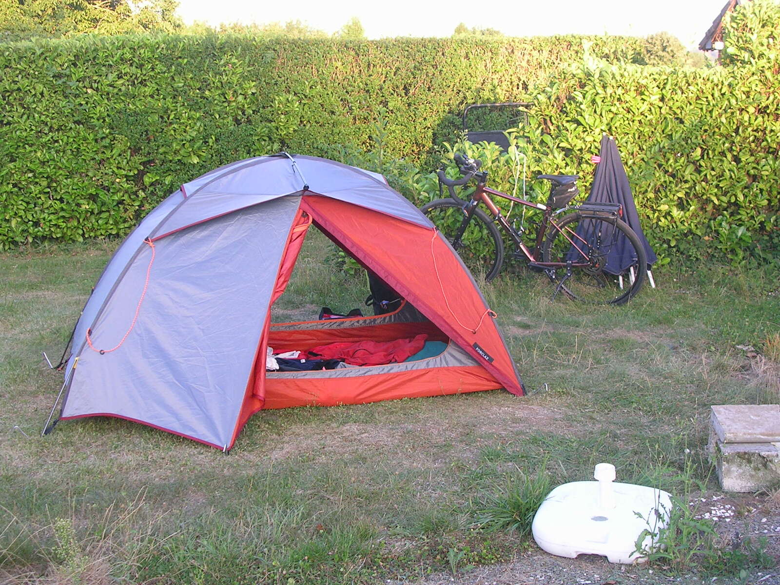 Mes randonnées cyclo-camping se font toujours après le 15 Août. A cette date les terrains de camping se vident et donc je n’ai pas besoin de réserver à l’avance mes campements. De plus de nombreux terrains labellisés ou non, ont souvent un espace réservé aux cyclotouristes. Pour vous donner une idée de ce que représente l’autonomie à vélo, je pars avec un vélo gravel d’environ 10 Kg et d’un chargement n’excédant pas les 20Kg, ce qui en fait au maximum 30Kg. Avant de partir je prépare mes parcours sur un programme informatique, qui seront chargés dans mon GPS, ce qui n’empêche pas des modifications éventuelles en cours de route. Mes traces sont faites avec le programme libre Qmapshack (https://randocoq.fr/qmapshack/) ou en ligne sur Brouter web client (https://brouter.damsy.net/latest/#map=6/48.122/10.920/cyclosm), d’autres utiliseront OpenRuner, tous font le job, à vous de choisir. En route, avec le smartphone j’utilise un autre programme libre, "Organic Maps" (https://organicmaps.app/fr/), à la foi sobre en énergie et qui fonctionne en mode avion. Voilà pour les informations techniques à connaître.
