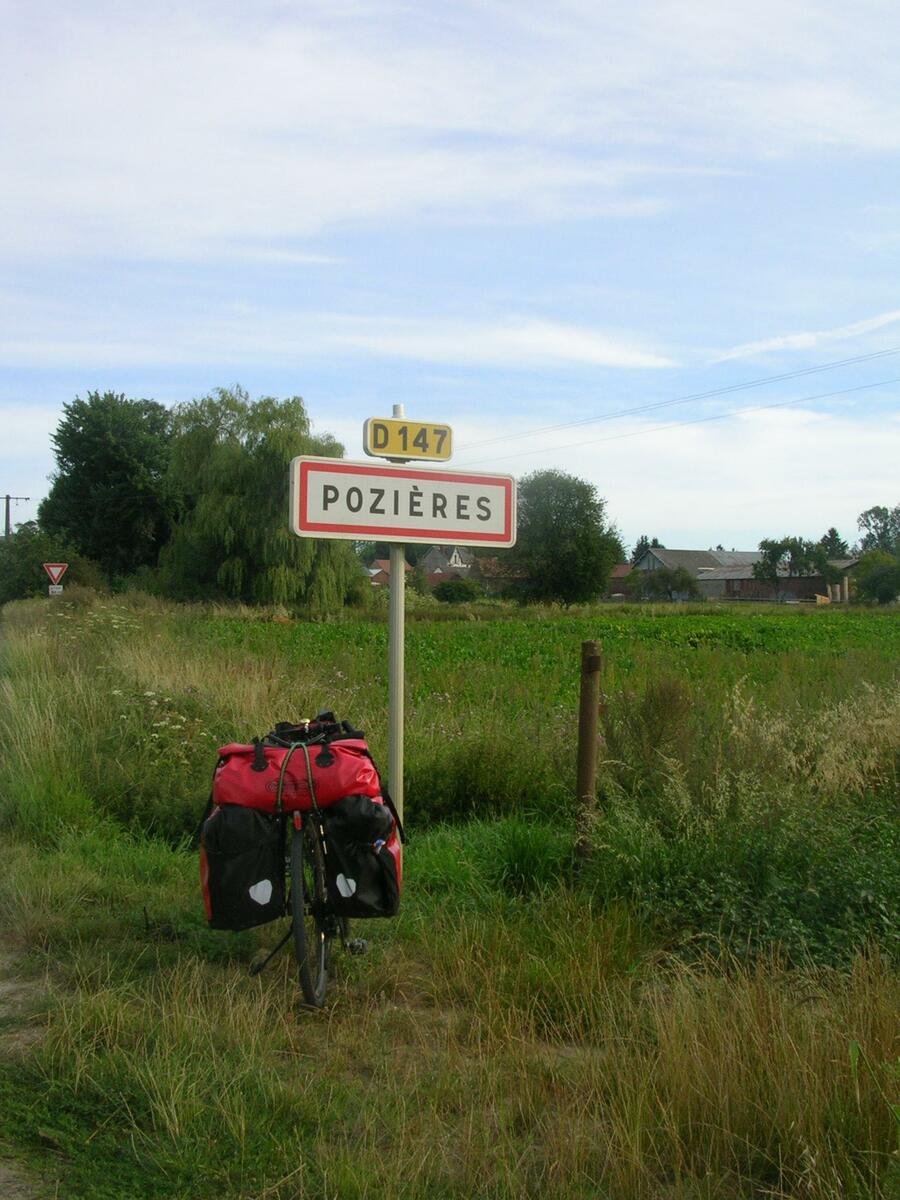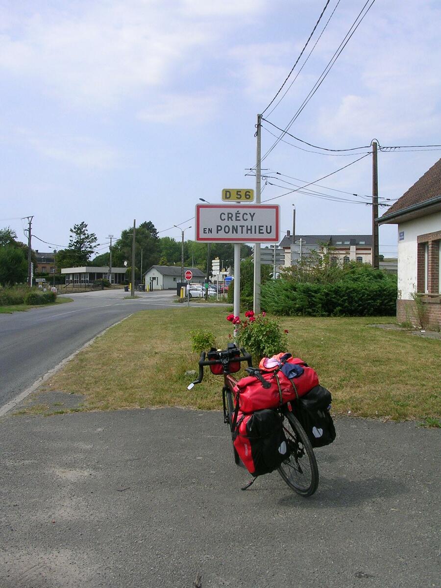 Aujourd’hui l’étape sera plus longue, je traverse des paysages de fermes et de cimetières militaires. Batailles de la Somme obligent, les sites en mémoire aux soldats Anglais, Australiens tombés au combat sont importants à Pozières. Son musée est fermé, j’y reviendrai sûrement avec mes petits-enfants. Je croise un peloton de cyclistes qui me souhaite bon courage et l’un d’entre eux dit à ses copains "en plus, il n’est pas tout jeune". En effet, j’ai souhaité mes 69 ans lors de la semaine fédérale d’Orléans, voilà 9 jours, mais faut-il être jeune pour se faire plaisir ? Les côtes fréquentes ponctuent le parcours avec une chaleur de 27°/30° et m’obligent parfois à mettre pied à terre pour marcher à l’ombre d’arbres bordants la route. Arrivé à Naours, je ne prendrai pas le temps d’une visite de cette cité souterraine, ce serait trop long, mais je profiterai de pique-niquer à l’ombre sur un banc mis à disposition par le village. Je me rapproche de la mer et le vent est plus frais. Ce soir le vent s’est levé, le ciel est nuageux, a changé, pas de pluie annoncée, on verra. Les jeunes de ce terrain de camping municipal chargé de mobil-home résidentiels se sont manifestés à proximité de ma tente la nuit tombée. Ils s’ennuyaient sûrement et auraient voulu échanger avec ce campeur bizarre que je devais représenter à leurs yeux. J’étais trop fatigué pour avoir envie de me relever, leur expliquer la raison de ma présence, de mon voyage et probablement les faire rêver aussi un jour de partir à vélo.