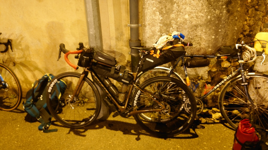 Après Tours, nous pensions nous reposer mais que nenni toujours du vent pour nous occuper l'esprit et saper le peu de force qu'il nous restait. Le ravitaillement à Villegouin à 316km du départ était d'un sacré réconfort. Outre l'organisation du MC Ultra, la fête du village battait son plein. Cela a réussi à me bercer une petite heure avant de repartir vers 21h30 pour affronter la nuit et passer aux pieds de deux autres cathédrales : celle de Châteauroux et Bourges. Je ne suis pas peu fier d'avoir parcouru virtuellement le tracé afin d'anticiper les ravitaillements d'eau et les éventuels spots de Bivouac. Surtout après Issoudun où seules les éoliennes et leur lumière faisaient écho à nos phares déchirant la nuit.