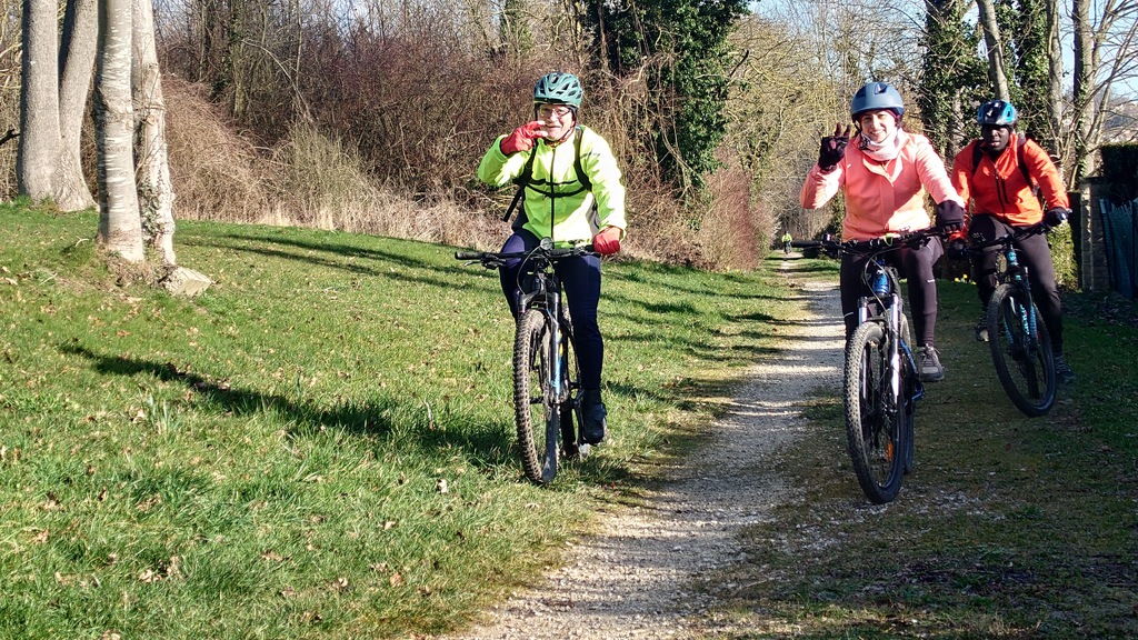Retour vers la civilisation à Magny le Hongre puis à Coupvray où nous sommes passés devant la demeure de Louis Braille, inventeur du langage du même nom avant d'attaquer côtes et descente technique mais au combien sans boue vers les berges de la Marne. Faroudja s'en est donnée à coeur joie dans les descentes puisqu'elle n'était jamais loin des premiers et arrivait en bas des escaliers ou de la descente avec le sourire.