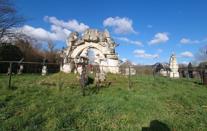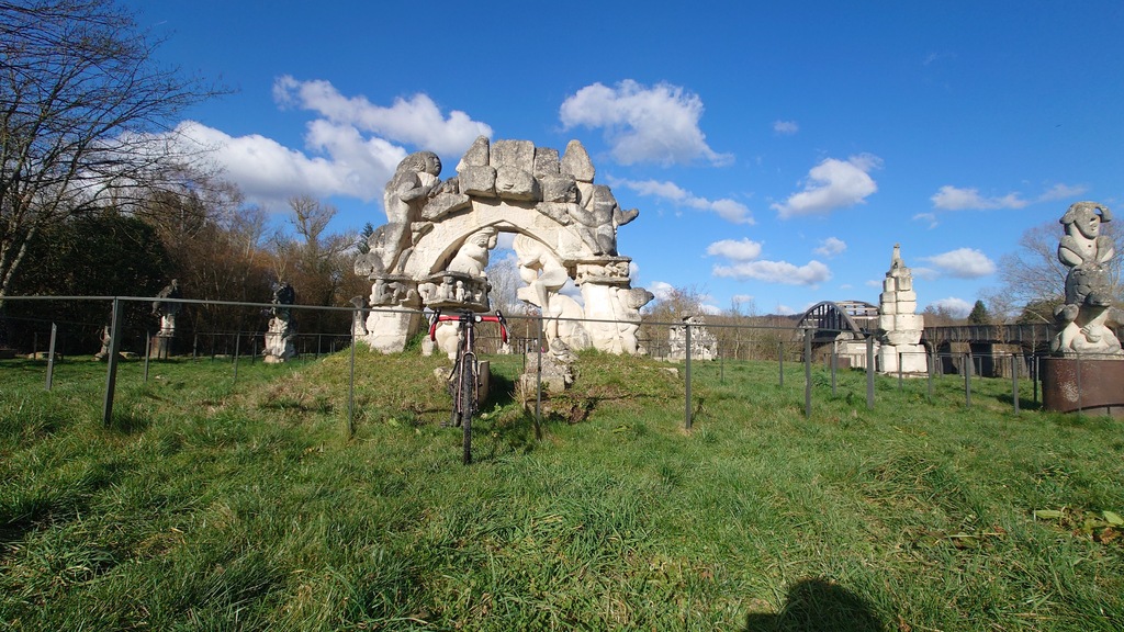 Sur la berge de la Marne ,les statues du jardin de la Dhuys attendaient paisiblement les vététistes de passage ainsi que les badauds.Imperturbables, ces dernières sont réalisées à partir de la pierre du pont aqueduc détruit. Le groupe repart mais voilà que deux intrus se lancent dans les roues de Christian et Alain qui menaient le groupe. Petite ligne droite et les deux intrus s'élancent, un graveleux et un vététiste à casque audio ; dans leurs roues Christophe Uno qui s'amuse à les courser jusqu'à l'écluse de Chalifert.